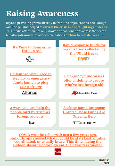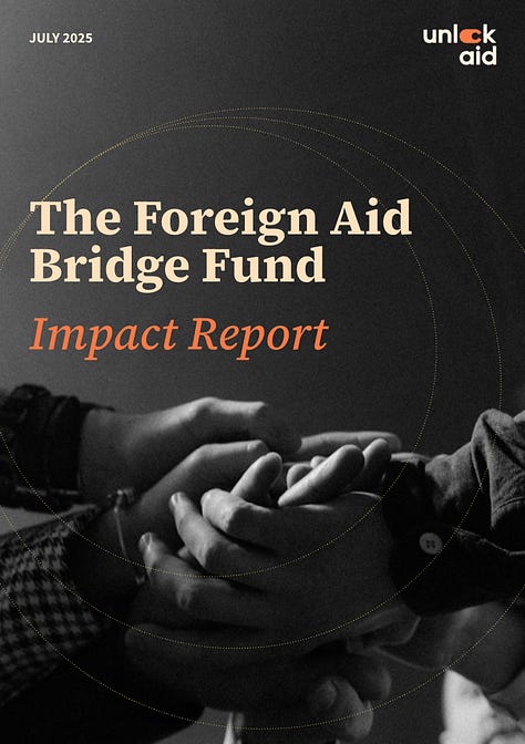 Today, as we publish our Foreign Aid Bridge Fund Impact Report, we want to pause and recognize what this community accomplished together.