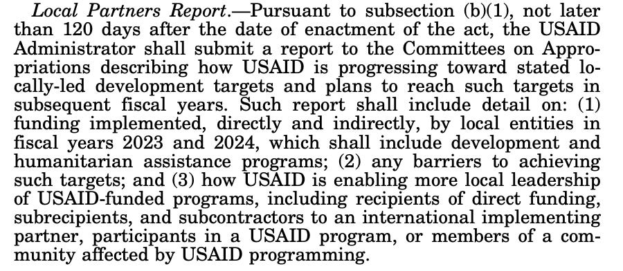 Congress also wants to know how USAID plans to increase funding to local partners: